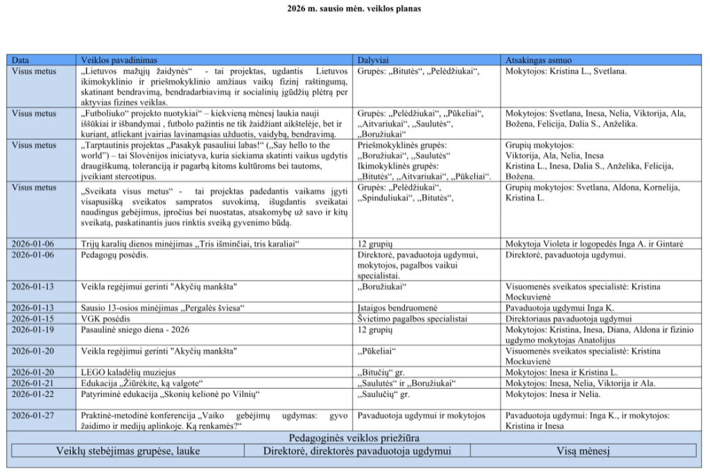 2025 m. gruodžio mėn. veiklos planas