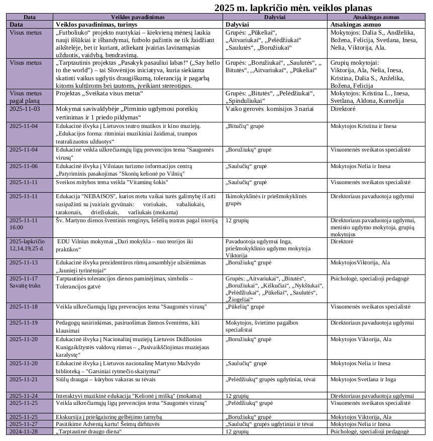 Lopšelio-darželio „Lakštingala“ specialistų paslaugos